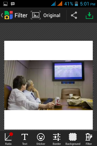 I wanted to upload a pic of President Obama watching a USA match in an aircraft on my BBM profile. The pic is a rectangle and I will have to crop it to give a square image. Check out what kind of thing the pic will turn to if I cropped it into square