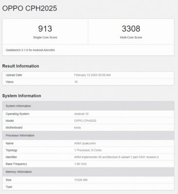 The Oppo Find X2 Pro smartphone made an appearance on Geekbench before its official announcement that was postponed after the cancellation of the MWC 2020.